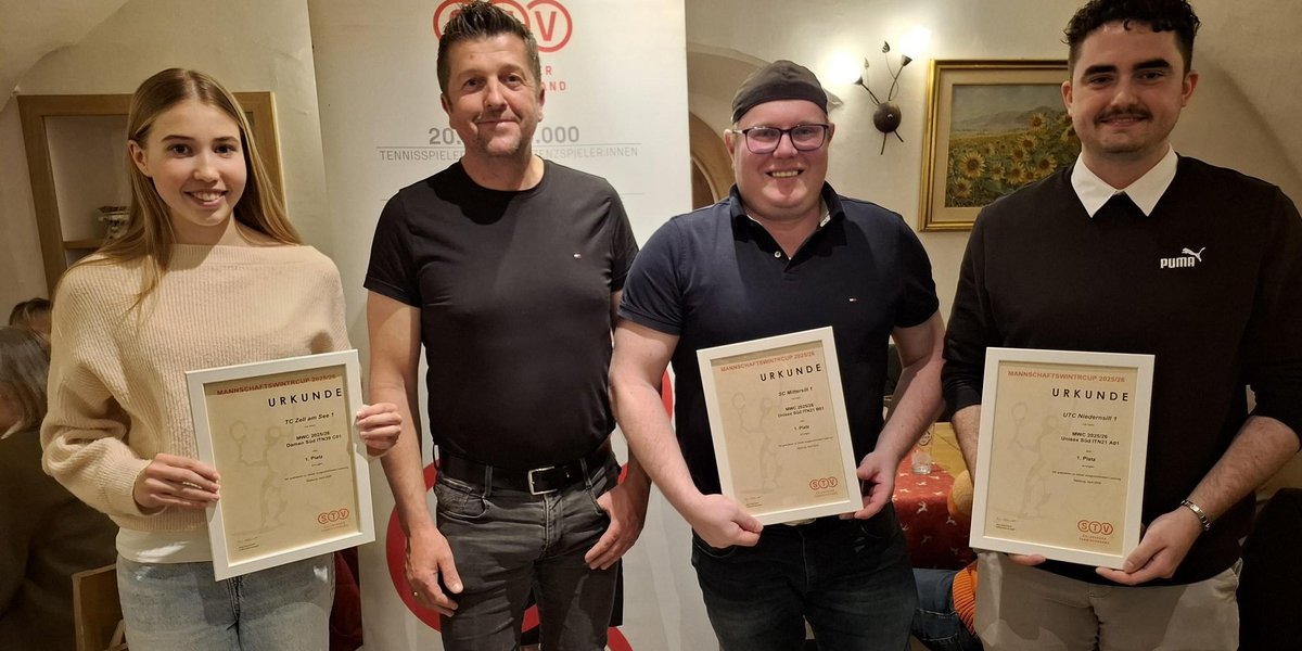 STV; v.l.: Nina Schnaitl (TC Zell am See), Patrick Puchler (UTC Piesendorf), Stefan Pletzer (SC Mittersill), Julian Seitinger (UTC Niedernsill)