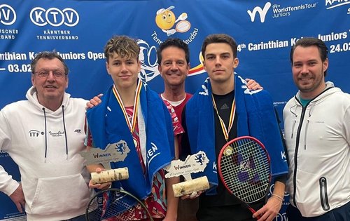 Nach je einem ITF-J60- und ITF-J30-Event in Oberpullendorf ist vergangene Woche noch ein weiteres internationales U18-Turnier in Österreich über die Bühne gegangen: Die 1st Carinthian Juniors Open by Fresacher. Bei dieser ITF-J30-Teppichveranstaltung vom 28. Jänner bis 3. Februar beim Tennisclub Neudau in Wolfsberg erzielten die rot-weiß-roten Nachwuchsasse diesmal gemischte Erfolge. Doch ganz fest in heimischer Hand war das Burschendoppel – wo mit Gustav Dressler / Timo Rosenkranz-König, den drittgesetzten Florian Doleys / Niklas Maislinger, den viertpositionierten Maurice-Noel Kaserer / Julian Platzer und Bastian Berenz / Gabriel Niedermayr sogar ausschließlich Österreicher unter die letzten Vier einzogen. Am besten lachen hatten am Ende Dressler/Rosenkranz-König, die nach zuvor drei Zweisatz-Siegen im Endspiel schließlich vom Nichtantritt von Berenz und Niedermayr profitierten. Für beide ist es der erste ITF-Jugendtitel.