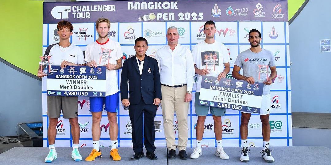 - ATP-75-Challenger in Nonthaburi (Thailand): Liberec 2022, Karlsruhe 2023, Troyes 2024 und Nonthaburi 2025 – Neil Oberleitner hat sich in der Großstadt in der Nähe der thailändischen Hauptstadt Bangkok nach seinem Finaleinzug eine Woche zuvor nun die vierte ATP-Challenger-Doppeltrophäe seiner Karriere geangelt. Der Wiener (ATP-Doppel 208) bezwang an der Seite des taiwanesischen Linkshänders Ray Ho (ATP-Doppel 146) zunächst der Reihe nach das südkoreanisch-japanische Gespann Jisung Nam und Kaito Uesugi knapp mit 4:6, 7:6 (5) und 10:2 im Match Tiebreak, den Australier Blake Bayldon und den Schweizer Jakub Paul mit 6:3, 7:5 und das viertgereihte finnisch-amerikanische Duo Patrik Niklas-Salminen und Reese Stalder mit 6:3, 3:6, 10:3. Im Endspiel krönten die beiden ihre starke Turnierwoche durch ein 6:4, 7:6 (5) über Daniel Cukierman (Israel) und Joshua Paris (Großbritannien). Dabei drehten Ho/Oberleitner im zweiten Satz einen 2:4-Rückstand bzw. im Tiebreak ein 0:3 und 2:4 noch um. Der Lohn: pro Kopf 2490 US-Dollar Preisgeld und 75 ATP-Punkte. Mit Letzteren verbesserte sich Oberleitner am Montag im Doppelranking auf Position 180, nur noch 32 Plätze hinter seinem Career High. Im Einzel war der 25-Jährige als Lucky Loser in der ersten Hauptrunde ausgeschieden.
