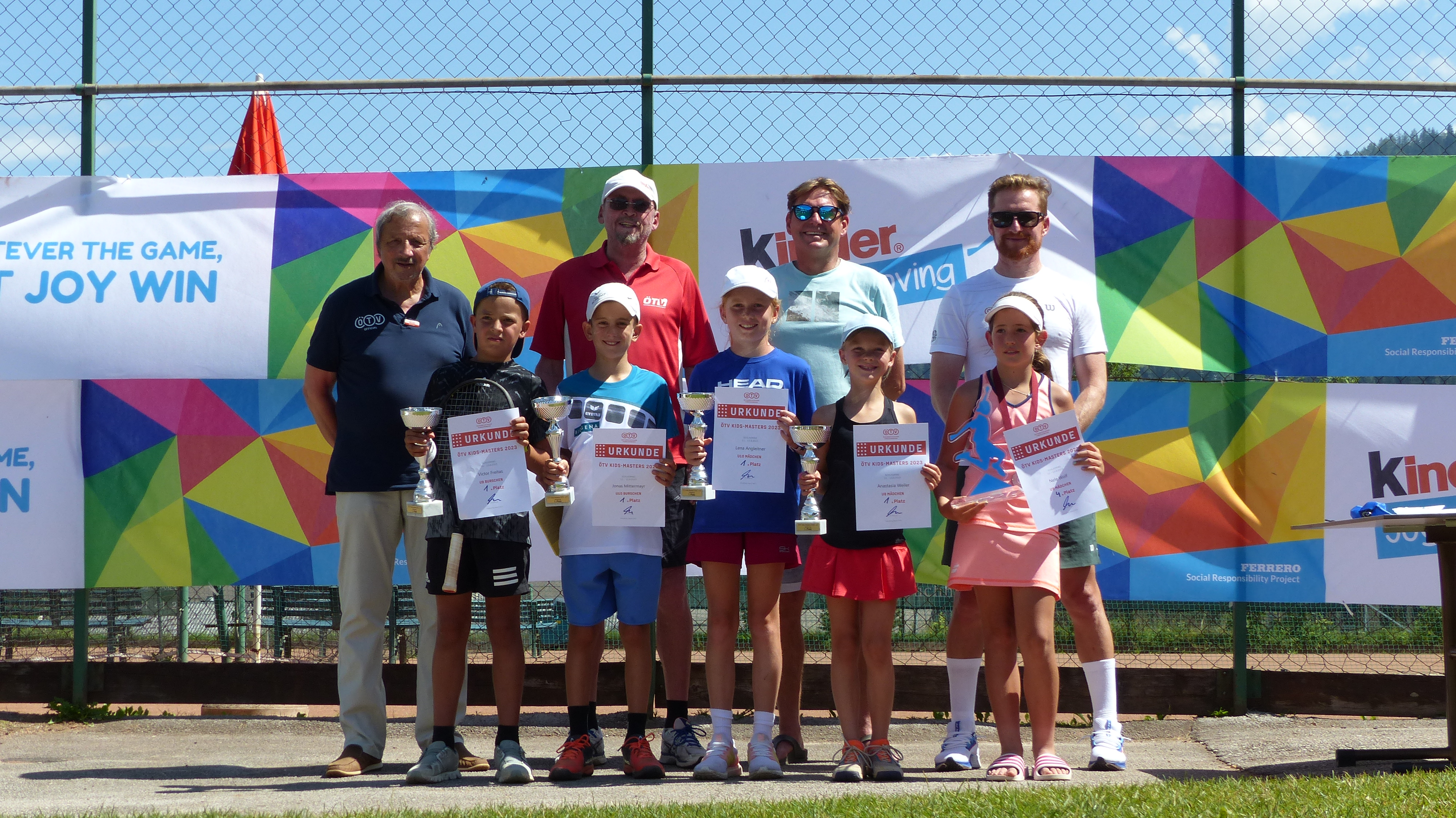 Der Sieger U10, Jonas Mittermayr (OÖTV), und die Siegerin U10, Lena Angleitner (OÖTV), sowie Finalist Jan Celiscak (WTV) und Finalistin Celina Aberer (VTV) vertreten Österreich beim internationalen Masters der „The Kinder Joy of moving Tennis Trophy“ (ein Projekt der Ferrero-Gruppe) vom 30. Oktober bis 2. November auf der Anlage der Rafa Nadal Academy auf Mallorca. Die stärkste Abordnung stellte der Niederösterreichische Tennisverband, gefolgt von Oberösterreich, die beiden Verbände waren in dieser Reihenfolge auch am erfolgreichsten.