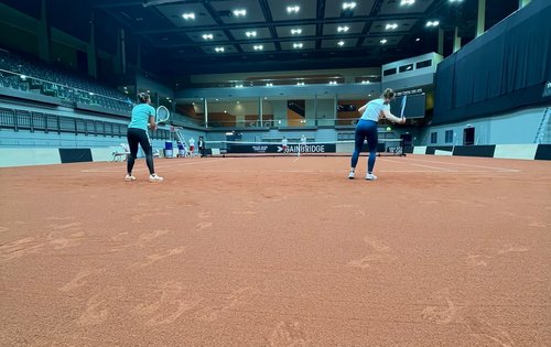 Der Countdown läuft: In vier Tagen kämpft das ÖTV-Damenteam im Billie Jean King Cup im Play-off gegen Lettland um einen Platz in der im Frühjahr steigenden Qualifikation zu den Billie Jean King Cup by Gainbridge Finals 2023. Am Sonntag hat das Alpstar Austria Billie Jean King Cup Team im Multiversum Schwechat schon das Training aufgenommen. Und zwar zunächst mit einem Trio: Sinja Kraus, Tamira Paszek und Melanie Klaffner, die – gemeinsam mit ÖTV-Captain und -Sportkoordinatorin Marion Maruska – den Sandplatz vor den Toren Wiens bespielten. „Barbara Haas stößt erst am Montag zum Team hinzu“, verriet Maruska. „Am Sonntag ist erst mal nur ein lockeres Schlagen auf dem Programm gestanden, um sich an die Bedingungen zu gewöhnen: an den Court, die Größe der Halle, das Licht, den Belag. Die meisten unserer Spielerinnen haben zuletzt doch auf Hartplatz gespielt und müssen sich daher ein wenig umstellen.“