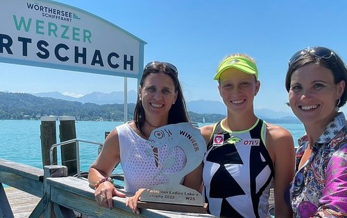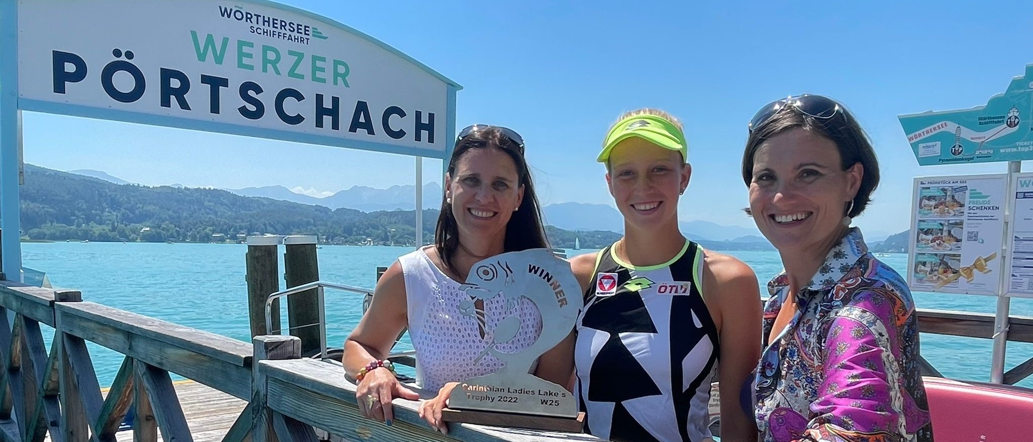 Sinja Kraus (Mitte) nach ihrem letztjährigen Sieg beim Abschlussturnier in Pörtschach mit Turnierleiterin Julia Adlbrecht (links) und ÖTV-Vizepräsidentin Elke Romauch.