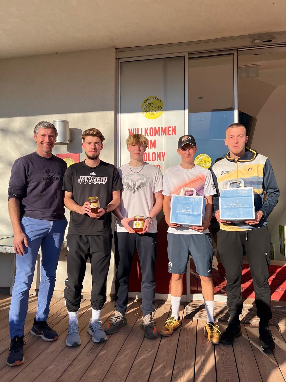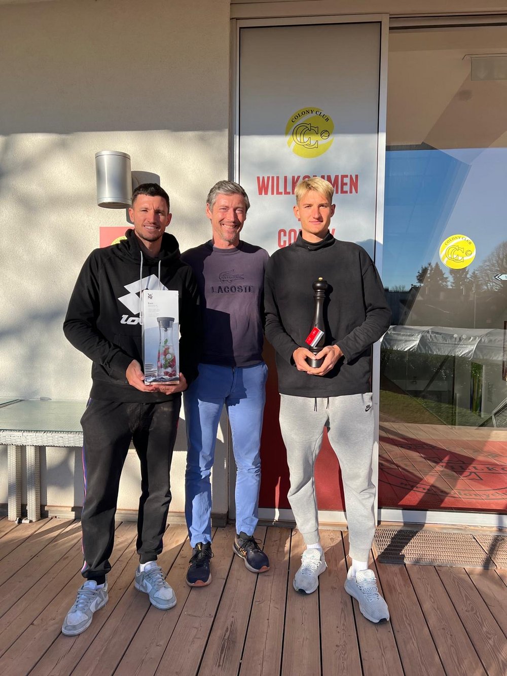 Auch die Herren waren im Colony Club bei den parallel stattfindenden ÖTV-Bewerben der Kategorie 1 fleißig bei der Sache – unter namhafter, starker Besetzung. Nicht nur David Pichler (ATP-Einzel 690, ATP-Doppel 149) und etwa der frischgebackene Österreichische Hallenvizemeister Peter Goldsteiner (ATP 2065) waren dabei, sondern vor allen auch das langjährige heimische Davis-Cup-Ass Dennis Novak. Der topgesetzte Niederösterreicher (ATP 352) drehte die Matches im Viertelfinale gegen Jonas Gundacker (ATP 2106) und im Semifinale gegen Ex-Staatsmeister Lenny Hampel (seinen Teamkollegen beim Sieger der win2day Bundesliga, Union Stein&Co Mauthausen) noch jeweils nach Satzrückstand um, musste sich im Endspiel aber dem zweitpositionierten Ilya Snitari aus Moldau (ATP 578) mit 3:6, 5:7 geschlagen geben. Lediglich ÖTV-Vertragsspieler Piet Luis Pinter (ATP 2129) hatte Snitari im Turnierverlauf einen Satz abnehmen können, beim knappen 7:6, 3:6, 3:6 im Viertelfinale. Der Doppeltitel ging an Gasparovics Freund Alexander Wagner (BTV) und Syl Gaxherri (STTV), die in der Vorschlussrunde zunächst überraschend die topgesetzten Goldsteiner (WTV) und Pichler (BTV) mit 7:5, 6:3 hinausnahmen und im Finale auch gegen Moritz Lehrner-Melzer (WTV) und Marko Milosavljevic (WTV) mit 6:0, 6:4 das bessere Ende für sich hatten.