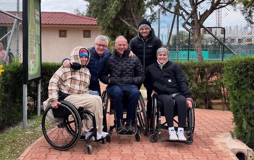 Geschäftsführer Wirtschaft Thomas Schweda (2. von links) vertrat den Österreichischen Tennisverband bei der Tennis-Europe-Generalversammlung in Belek – und feuerte vor Ort auch gemeinsam mit ÖTV-Inklusionsleiter Stefan Schuh (4. von links) die heimischen Rollstuhltennisasse an.
