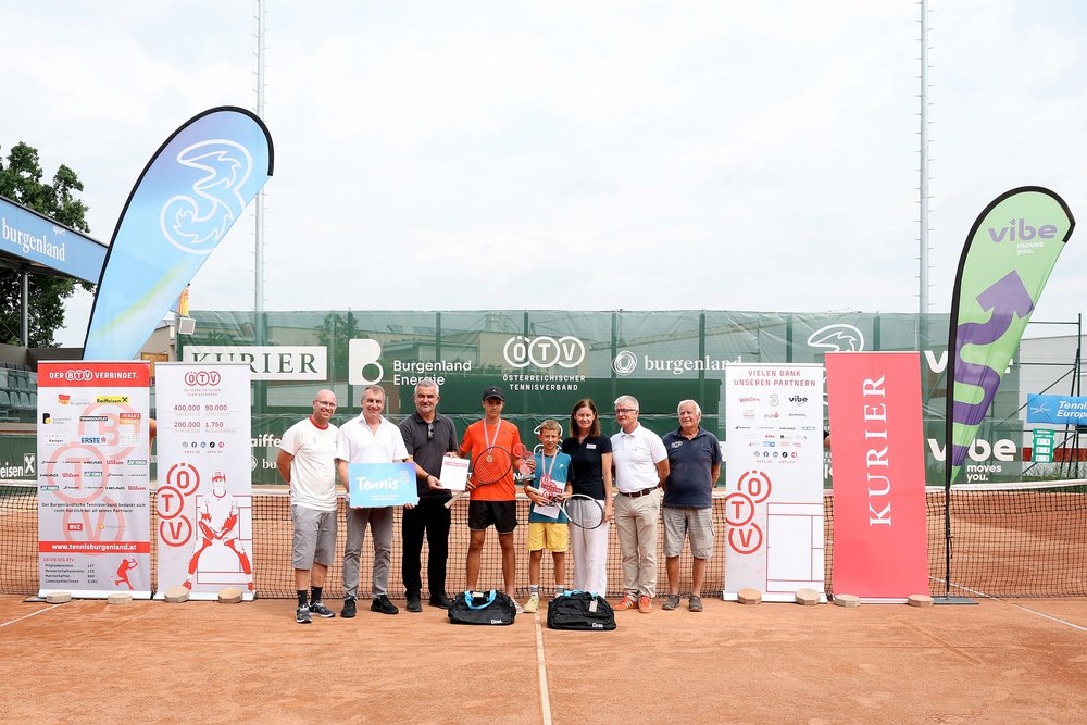 Die Drei ÖTV-Jugendmeisterschaften 2025 U12/U14/U16 waren wieder ein voller Erfolg. Und zwar sowohl quantitativ als auch qualitativ. Stolze 329 Anmeldungen kamen für die sechs Einzelbewerbe im TC Sport-Hotel-Kurz in Oberpullendorf zustande, 67 mehr als im Vorjahr. Österreichs Nachwuchs demonstrierte dabei im Burgenland vom 11. bis zum 17. August sein ganzes Können, wovon man sich sowohl vor Ort als auch in den Livestreams auf KURIER.at und ÖTV TV ein Bild machen konnte. Am Mittwoch weilte Magnus Brunner, Ex-ÖTV-Präsident und EU-Kommissar für Inneres und Migration, auf der Anlage, um Sohn Louis zu unterstützen, und auch STV-Präsident Christian Zulehner war beim wichtigsten Jugendturnier des Jahres anwesend. Dem Finaltag wohnte, unter anderen, Burgenlands Sportlandesrat Heinrich Dorner bei, der sämtliche Sieger:innenehrungen gemeinsam mit ÖTV-Geschäftsführer Wirtschaft Thomas Schweda, ÖTV-Sportkoordinatorin, -Billie-Jean-King-Cup-Kapitänin und -Jugendreferentin Marion Maruska, BTV-Präsident und zugleich Veranstalter Günter Kurz, Turnierleiter Markus Pingitzer und Oberschiedsrichter Gerhard Malainer vornahm. Zudem waren die ÖTV-Sponsoren Drei, KURIER und vibe moves you an allen Spieltagen vor Ort präsent.