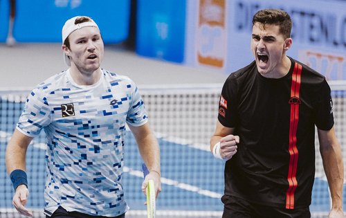 Der Erfolgslauf geht munter weiter: Nach ihrem letztwöchigen, sechsten gemeinsamen ATP-Doppeltriumph in Antwerpen haben Alexander Erler und Lucas Miedler bei den Erste Bank Open in Wien am Freitag am Nachmittag das Halbfinale erreicht. Und das mit einer starken Vorstellung: Der Tiroler (ATP-Doppel 48) und der Niederösterreicher (ATP-Doppel 58) fertigten im Viertelfinalmatch bei Erste Bank Open 2 Go auf dem Gelände des Wiener Eislauf-Vereins auf dem Heumarkt den Italiener Luciano Darderi (ATP-Doppel 275) und den Argentinier Mariano Navone (ATP-Doppel 407) in nur 61 Minuten mit 6:3, 6:3 ab. Am Nationalfeiertag am Samstag dürfen sich die letzten verbliebenen Lokalmatadore somit auf eine ausverkaufte Wiener Stadthalle freuen. Als Gegner warten im ersten Match um 13:00 Uhr die drittgesetzten Harri Heliövaara aus Finnland (ATP-Doppel 14) und Henry Patten aus Großbritannien (ATP-Doppel 18).