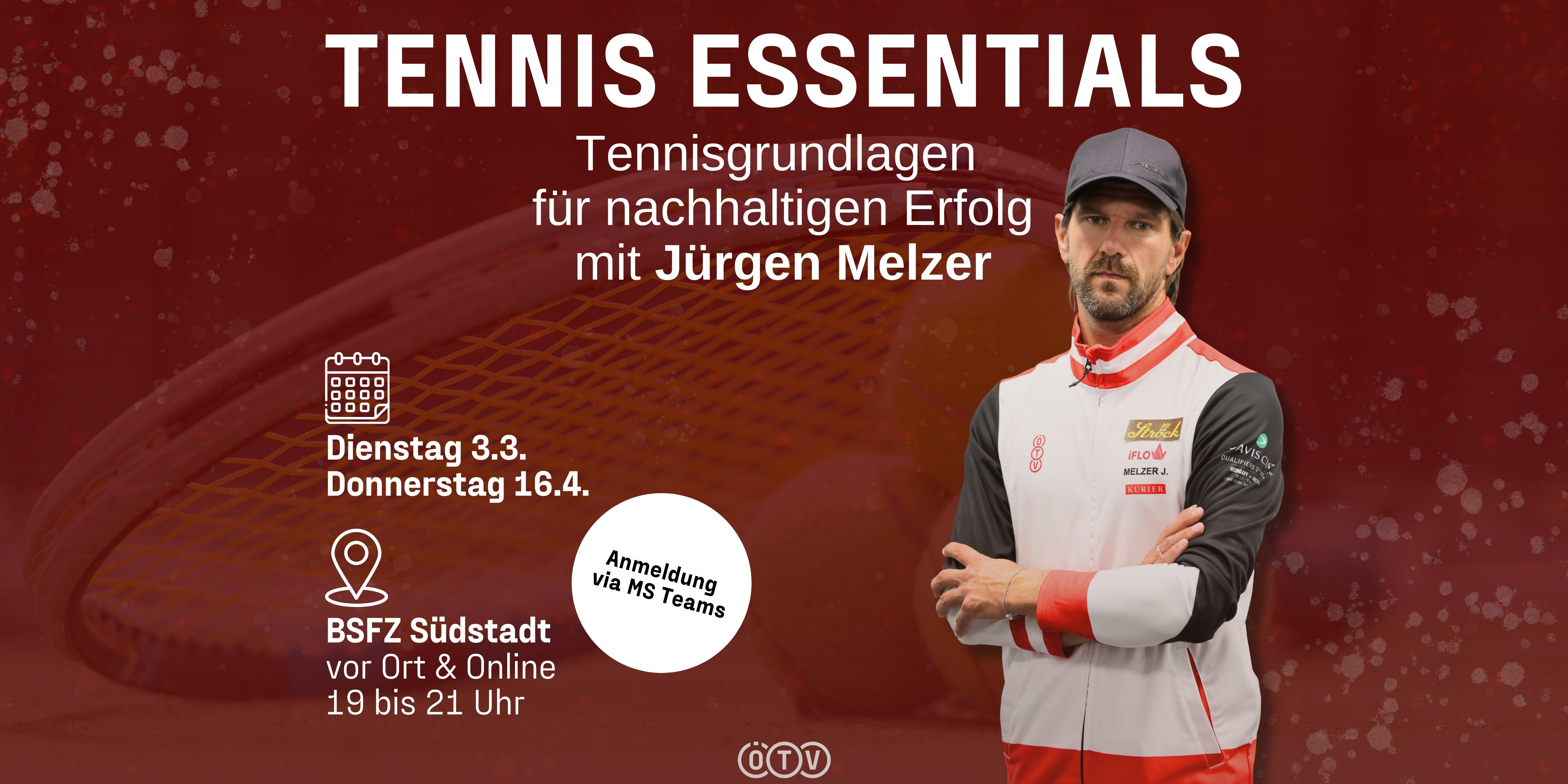 Als früherer ATP-Top-Ten-Spieler im Einzel und Doppel und langjähriger Weltklassemann ist Jürgen Melzer nicht nur der dritterfolgreichste rot-weiß-rote Tennisprofi aller Zeiten, sondern zudem Österreichs Davis-Cup-Rekordspieler. Der ÖTV-Sportdirektor führte Joel Schwärzler an die Spitze der Jugendweltrangliste, als Kapitän das KURIER Austria Davis Cup Team im letzten Jahr zu den Davis Cup Final 8 der besten acht Nationen der Welt – und am vergangenen Wochenende mit dem erfreulichen 3:2-Sieg in Japan in die zweite und letzte Qualifikationsrunde zum Finalturnier 2026. Aber auch ihr könnt jetzt von der Expertise und den umfassenden, vielschichtigen und jahrzehntelangen Erfahrungen des Niederösterreichers profitieren. Denn am Dienstag, 3. März 2026, sowie am Donnerstag, 16. April 2026, findet im BSFZ Südstadt (Liese-Prokop-Platz 1 in 2344 Maria Enzersdorf) jeweils von 19:00 bis 21:00 Uhr eine Fortbildung mit dem 44-Jährigen statt.