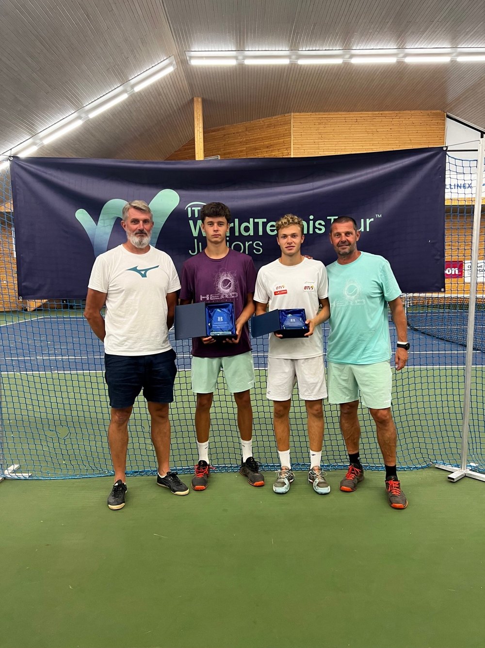 Hipfls Einzug ins Finale gestaltete sich als absoluter Durchmarsch. Er gab in den ersten vier Matches insgesamt lediglich 13 Games ab, erteilte im Viertelfinale der Nummer 488 im ITF-Jugendranking, Makar Krivoshchekov aus Russland, gar die Höchststrafe von 6:0, 6:0 und bezwang im Semifinale auch die Nummer zwei der Setzliste, den tschechischen Lokalmatador Lukas Velik (ITF 196), locker mit 6:3, 6:1. „Es war eine geile Turnierwoche mit den Jungs“, freute sich Werner Hipfl, Vater von Nico und Bruder von Ex-Profi Markus Hipfl. Reichlich Grund zur Freude lieferte indes auch Pinter, der bis zum Titelspiel ebenso ohne Satzverlust blieb, im Achtelfinale den drittgesetzten Tschechen Vojtech Vales (ITF 261) mit 6:1, 6:4 abfertigte und in der Vorschlussrunde dessen topgereihten Landsmann Jan Klimas (ITF 181), Achtelfinalbezwinger von Thilo Behrmann (ITF 519), mit 6:3, 7:6 (4) aussteigen ließ. „Das war wieder eine gute Woche“, berichtete Pinter. „Ich bin froh, dass ich meinen Level von Deutschland nach Tschechien mitnehmen und Runde für Runde ein hohes Niveau zeigen habe können. Ich bin happy mit diesem Level, auf dem ich gespielt habe. Auch das Finale war ein gutes Match. Ich bin im Großen und Ganzen auf alle Fälle zufrieden, auch dass sich das intensive Training ausgezahlt hat.“
