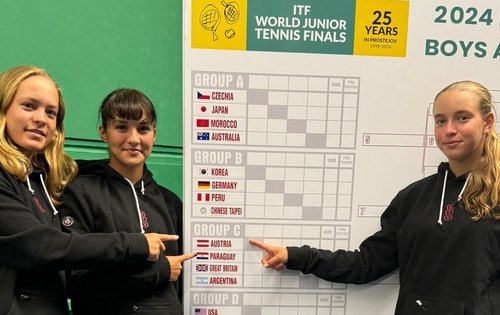 Die ÖTV-Nachwuchsmannschaft schafft beim Weltfinale in Prostejov frühzeitig den Aufstieg ins Viertelfinale.