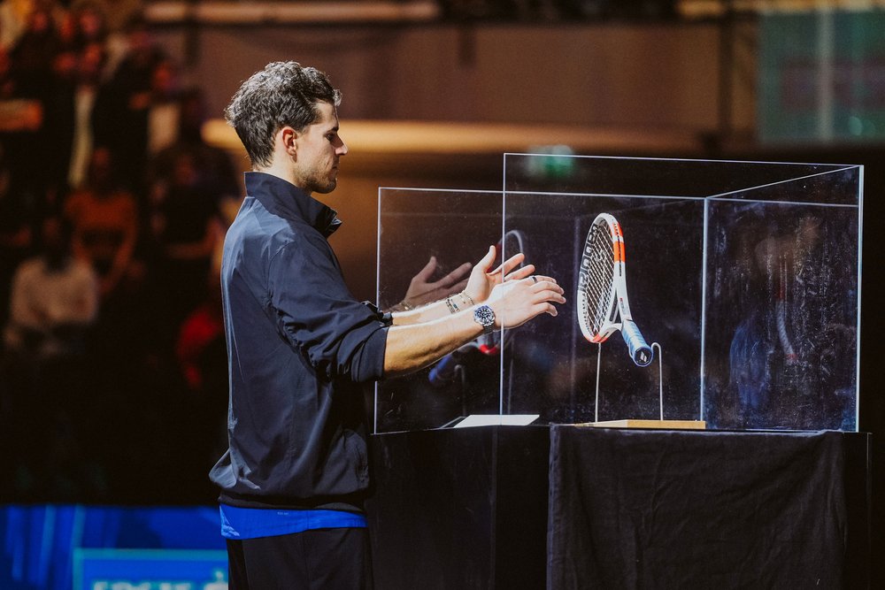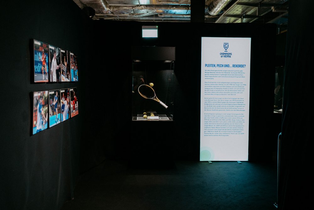 Gefeiert werden dabei auch Österreichs Tennisidole. Dominic Thiem hängte nach seinem letzten Profimatch seinen Tennisschläger auf dem Centre Court der Wiener Stadthalle im wahrsten Sinne an den Nagel bzw. in die Vitrine. Seither ist jener Schläger, wie Thiems Schuhe von den US Open 2020 („Was sind das für Schuhe?“), in der „Official Tennis Experience“ ausgestellt. Mittels VR-Brille kann man Thiems Abschiedsrede bei den Erste Bank Open so erleben, als stehe man neben ihm auf dem Centre Court der Stadthalle. Auch Selfies mit dem US-Open-Sieger von 2020 sind möglich, schließlich ist Thiems Original-Wachsfigur von „Madame Tussauds“ ausgestellt.