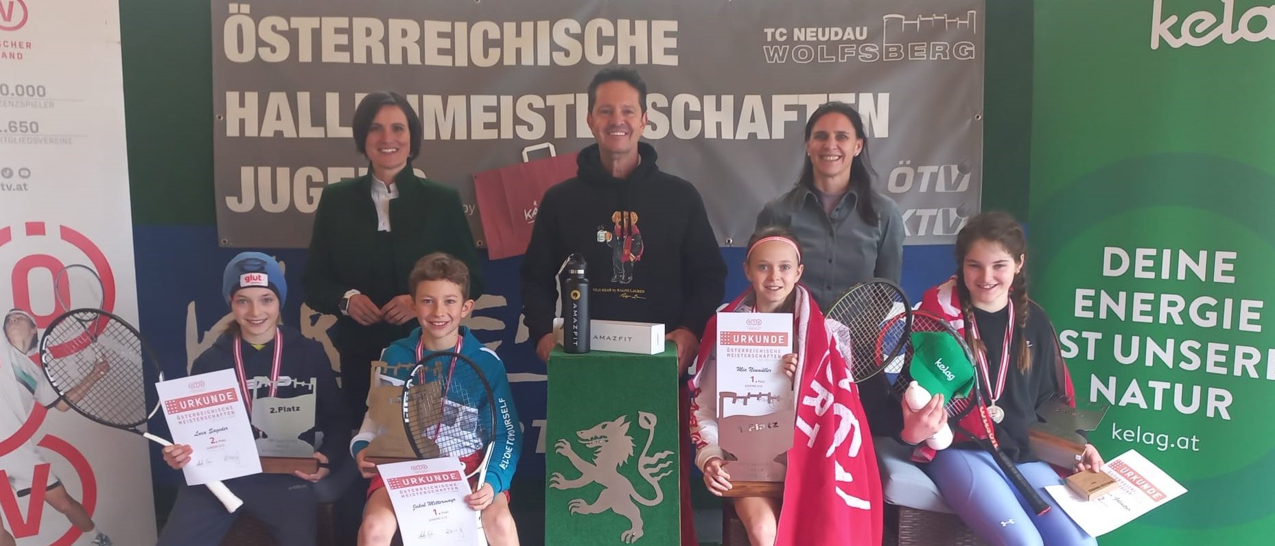 Halbzeit bei den ÖTV-Jugend-Hallenmeisterschaften 2023! Während am Donnerstag die Altersklassen U14 in Leibnitz und U18 in Enns starten, sind neben den Titelkämpfen der Unter-16-Jährigen in Oberpullendorf am Dienstag auch jene bei den Unter-Zwölfjährigen in Wolfsberg zu Ende gegangen. Durchgesetzt haben sich beim TC Neudau in Ostkärnten im Endeffekt die topgesetzten TurnierfavoritInnen: Bei den Mädchen schnappte sich Mia Neumüller (NÖTV) ihren allerersten Österreichischen Meistertitel und im Doppel mit Julia Ehrenberger (WTV) das Double. Bei den Burschen triumphierte Jakob Mittermayr (OÖTV), der mit seinem Einzel-Finalgegner Luca Sageder (OÖTV) das Double hingegen durch eine Finalniederlage gegen Dominic Messenlechner (TTV) und Badis Selmi (WTV) verpasste.