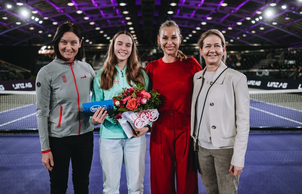 Nachdem Joel Schwärzler am 27. Oktober 2023 im Rahmen der Erste Bank Open in der Wiener Stadthalle schon ein viertes Mal als ÖTV-Nachwuchsspieler des Jahres prämiert worden war, ist nun auch sein Pendant bei den Mädchen an der Reihe gewesen. So wie bereits für die Saison 2022 ist Anna Pircher auch für ihre eindrucksvollen Leistungen im vergangenen Jahr von der fachkundigen, ÖTV-internen Jury – bestehend aus allen ÖTV-Trainern – auserkoren worden. Die Preisübergabe erfolgte am Dienstagabend bei höchst würdigem Ambiente: durch ÖTV-Sportkoordinatorin und -Billie-Jean-King-Cup-Kapitänin Marion Maruska auf dem Center Court des Upper Austria Ladies Linz, und das im Beisein von Turnierdirektorin Sandra Reichel sowie Turnierbotschafterin Barbara Schett-Eagle, der bestgereihten österreichischen Spielerin aller Zeiten (WTA-Rang 7).