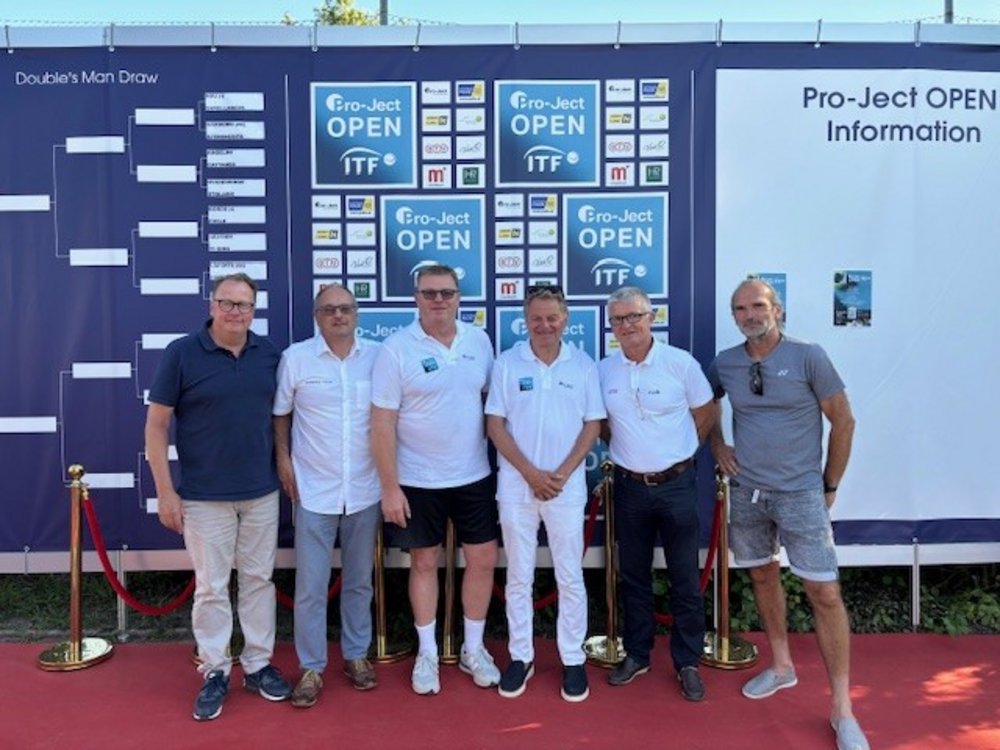 Von links nach rechts: Klaus Dundalek (Obmann UTC Mistelbach), Thomas Polke (Obmann-Stellvertreter UTC Mistelbach), Robert Heiss (Turnierdirektor), Heinz Lichtenegger (CEO Pro-Ject Audio Systems), Thomas Schweda (ÖTV-Geschäftsführer Wirtschaft), Karl-Heinz Wetter (Tennistrainer).
