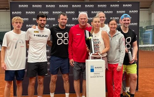 Für Schett-Eagle ging es um nichts weniger als die erfolgreiche Titelverteidigung. Auf dem Platz wurde sie vom ehemaligen Weltklassespieler und nunmehrigen ÖTV-Sportdirektor und -Davis-Cup-Kapitän Jürgen Melzer, ZiB-Moderator Tobias Pötzelsberger, Ex-Fußballprofi Toni Polster und Waterdrop-Gründungsmitglied Henry Murray unterstützt. Thomas Muster hielt mit seinem Team, dem unter anderen auch Stefan Dörfler, CFO der Erste Group, angehörte, dagegen. Ebenfalls zum Schläger griffen tennisbegeisterte Vertreter der heimischen Society- und Wirtschaftsszene wie Entertainer Tricky Niki, Schauspieler, Drehbuchautor und Moderator Michael Ostrowski oder Schönbrunn-Group-Geschäftsführer Klaus Panholzer. „Team Schett“ blieb am Ende erneut siegreich, womit sich Schett-Eagle zum zweiten Mal in Folge über den Rado-ProAm-Pokal freuen durfte. Von ÖTV-Seite waren u.a. Präsident Martin Ohneberg, Sportdirektor und Davis-Cup-Kapitän Jürgen Melzer, Sportkoordinatorin und Billie-Jean-King-Cup-Kapitänin Marion Maruska und Geschäftsführer Wirtschaft Thomas Schweda mit vollem Einsatz am Werk.