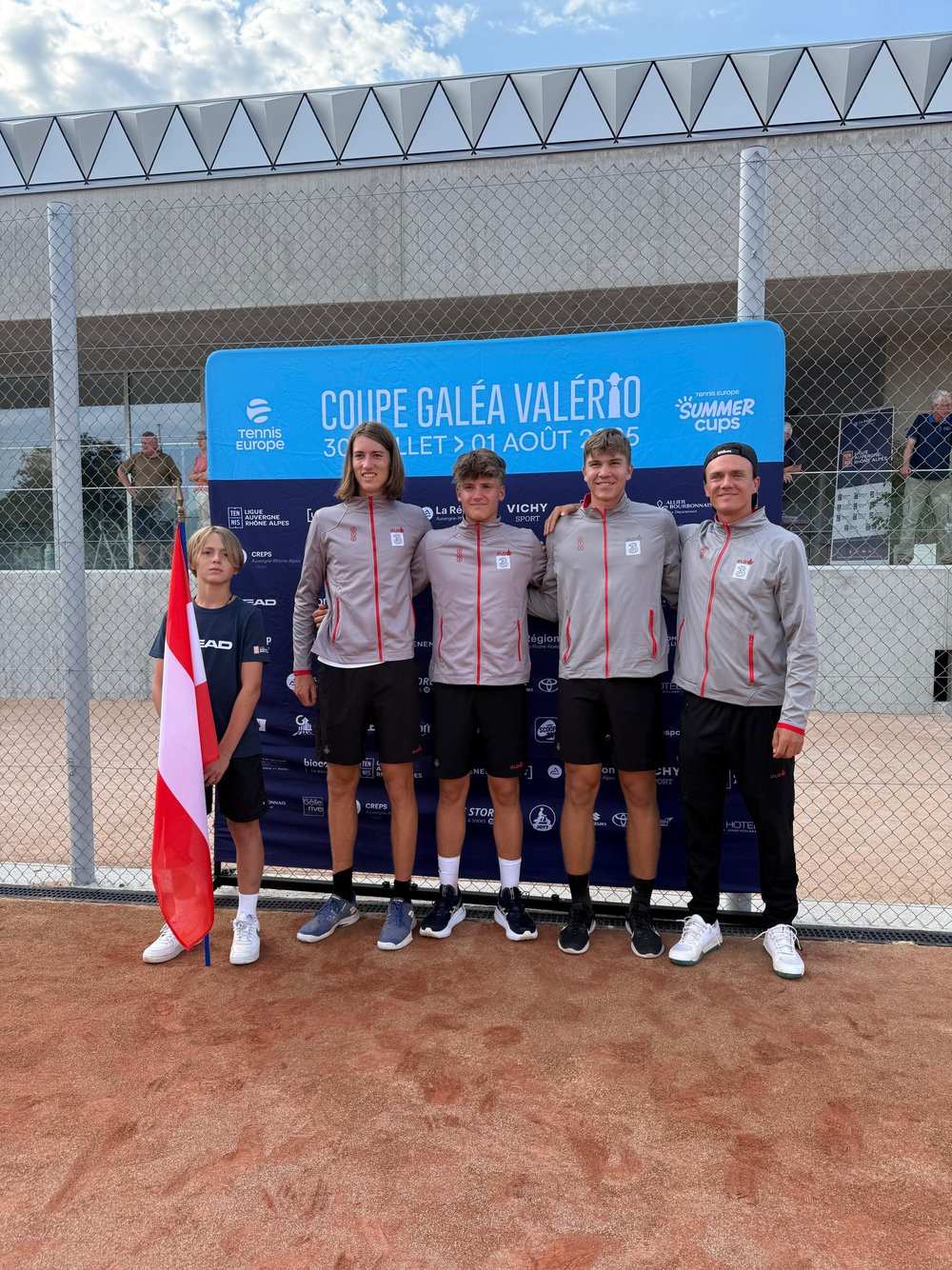 - Burschen U18: Auch die ältesten ÖTV-Jungs schlugen sich exzellent. Mit ihrem zweiten Platz in der Zone B der Qualifikationsrunde vom 30. Juli bis 1. August im französischen Vichy durften Thilo Behrmann (BTV), Florian Zimmer (NÖTV) und Alexander Gschiel (BTV) wie berichtet an der Finalrunde teilnehmen. Der sogenannte Galéa Valério Cup ging vom 4. bis 6. August in Rom über die Bühne – Ex-Leistungsspieler Sebastian Beutel, Touring Coach der Tennisakademie Burgenland, betreute die Burschen auch beim Europafinale in Italiens Hauptstadt. Dort ging zwar die Viertelfinalbegegnung gegen die Rumänen mit 1:2 verloren. Mit einem tollen 3:0 über Deutschland und einem 2:0 über Slowenien wurde aus dem Kampf um die Plätze fünf bis acht aber noch das Maximum herausgeholt.