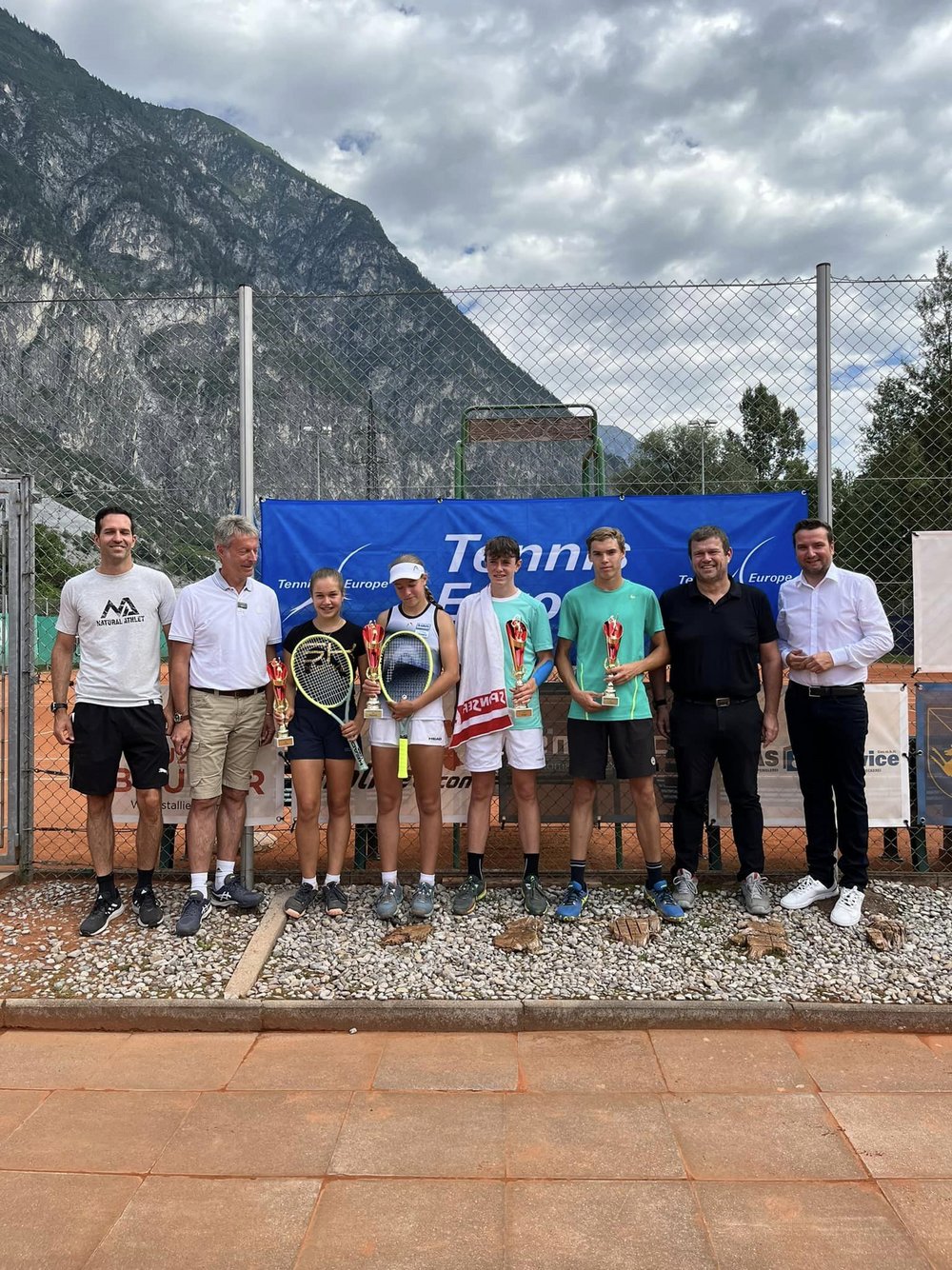 Ob im Osten oder im Westen von Österreich: Die abgelaufene Turnierwoche hat der ÖTV-Jugend serienweise Triumphe auf Tennis-Europe-Jugendebene gebracht. Während beim U12-Event in Wien drei der vier Bewerbe an die rot-weiß-roten Asse gingen, vermochten dies die heimischen Nachwuchstalente beim U14-Turnier in Zams sogar noch zu toppen. Denn bei der internationalen Jugendturnier-Veranstaltungspremiere bei SV Zams Tennis sicherten sich sowohl Lokalmatadorin Anna Pircher (im Mädchendoppel mit Kara Fronek) als auch Gabriel Niedermayr (im Burschendoppel mit Anton Kahlig) bei der Tennis Europe Trophy Zams das Double. Es gingen hierdurch also alle vier Konkurrenzen des Events der Kategorie 3 an Österreich.