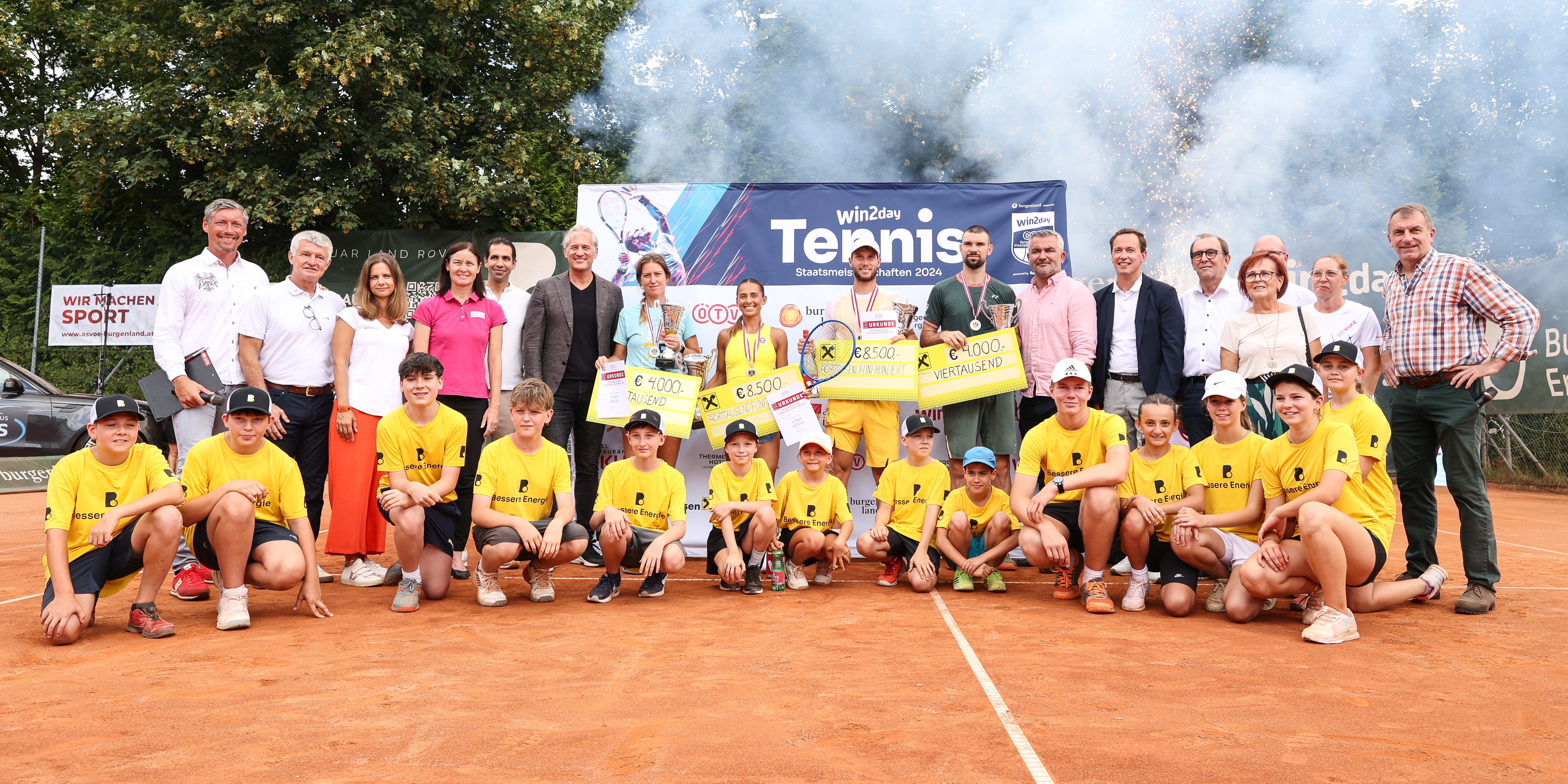 Bei den zum vierten Mal am Stück parallel ausgetragenen win2day ÖTV-Rollstuhltennis-Staatsmeisterschaften (am Donnerstag und am Freitag in Lutzmannsburg, am Samstag und am Sonntag in Oberpullendorf) wurde dank Titelsponsor win2day zum zweiten Mal in der Geschichte ein Preisgeld ausgezahlt, insgesamt 4500 Euro, gestaffelt je nach Größe des Teilnehmer:innenfeldes. In der Neuauflage des Vorjahresendspiels revanchierte sich bei den Herren der topgesetzte Nico Langmann (NÖTV) mit einem erstaunlich klaren 6:1, 6:1 gegen Josef Riegler (NÖTV) für die Niederlage 2023, zum dritten Mal in Folge wieder live übertragen auf ORF SPORT+. Für Langmann ist dies der siebte Staatsmeistertitel in seiner Laufbahn. Bei den Damen verteidigte indes Christina Pesendorfer (STV) durch ein 6:1, 6:2 im Finale über Vanessa Jenewein (TTV) ihren Titel und eroberte ihren insgesamt dritten Pokal bei den nationalen Titelkämpfen. Durch seinen bereits am Samstag an der Seite von Riegler geholten Herren-Doppeltitel fixierte Langmann im Mittelburgenland am Ende das Double. Bei den Quads siegte schon am Samstag das vierte Mal in Serie Roman Zechmeister (WTV). Der Finaltag wurde durch die Anwesenheit von Mag. Heinrich Dorner (Sportlandesrat im Burgenland), Elisabeth Altmann (Sportsponsoring win2day), Mag. Dr. Stephan Sharma (Präsident Special Olympics Burgenland, CEO Burgenland Energie) und Johannes Heisz (Bürgermeister Stadtgemeinde Oberpullendorf) zusätzlich aufgewertet – seitens des Österreichischen Tennisverbands waren unter anderen Präsident Martin Ohneberg, Geschäftsführer Wirtschaft Thomas Schweda sowie Sportkoordinatorin und Billie-Jean-King-Cup-Kapitänin Marion Maruska zugegen. Sportdirektor und Davis-Cup-Kapitän Jürgen Melzer war bis Samstag ebenfalls vor Ort und musste danach zum ATP-125-Challenger nach Salzburg aufbrechen.