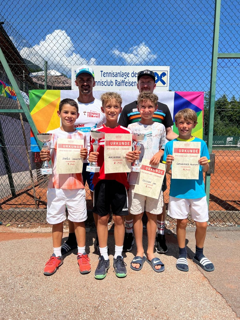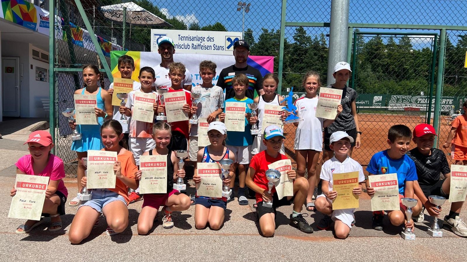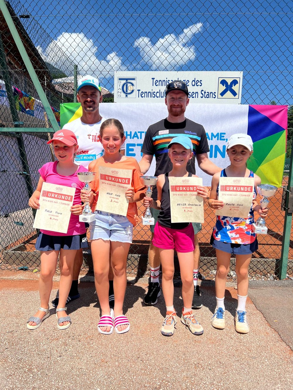 Die Vorausscheidung ist abgeschlossen, jetzt geht es bei der „The Kinder Joy of moving Tennis Trophy 2023“ (ein integraler Bestandteil von „Kinder + Sport Joy of Moving“, dem internationalen Projekt für soziale Verantwortung der Ferrero-Gruppe) ans Eingemachte! Beim TC Raiffeisen Stans hat vom 7. bis zum 10. Juli nämlich das dritte ÖTV-Kids-Kat.-I-Turnier dieser Saison für die Altersklassen U9 und U10 stattgefunden. Dieses bedeutete zugleich auch eine allerletzte Chance, sich einen der jeweilig acht Plätze pro Geschlecht und Alterskategorie beim bevorstehenden Masters in Schladming (11. bis 13. August) zu sichern. Die Turniersiege gingen an Teodor Mihai Vasile (Burschen U9), Sebastian Schöls (Burschen U10), Anastasia Weiler (Mädchen U9) und Nina Buchegger (Mädchen U10).