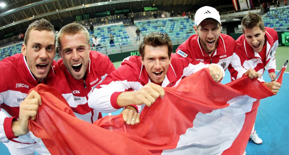 2012: 17 Jahre sollte es dauern, bis den ÖTV-Mannen wieder der Sprung ins Viertelfinale vergönnt war. Ein Jahr, nachdem dieser beim 2:3 gegen Frankreich am Flughafenhangar in Wien-Schwechat noch knapp verwehrt geblieben war, durfte man sich neuerlich eines Heimspiels in der ersten Runde der Weltgruppe erfreuen – und mit Russland zudem über eine lösbare Aufgabe in der Arena Nova in Wiener Neustadt. Die Gäste setzten im Einzel dabei überraschenderweise nicht auf Nikolay Davydenko und den leicht angeschlagenen Mikhail Youzhny, was den von Jürgen Melzer angeführten Hausherren entgegenkam. Ein Spaziergang wurde es deswegen freilich nicht, doch dem mittlerweile ÖTV-Sportdirektor und -Davis-Cup-Kapitän (in fünf Sätzen gegen Igor Kunitsyn) und Andreas Haider-Maurer (in vier Sätzen gegen Alex Bogomolov jr.) gelang es, dank eines 2:0 nach dem ersten Tag die Weichen frühzeitig auf Sieg zu stellen. Eine hauchdünne Doppelniederlage von Oliver Marach und Alexander Peya konnte man letztlich verkraften, denn Melzer machte gegen Bogomolov jr. zum Beginn des dritten Tages durch ein humorloses 6:2, 6:4, 6:1 den Sack zu. In der identen Formation ging’s zwei Monate später Anfang April nach Marina d’Or in der kleinen Gemeinde Oropesa del Mar in der spanischen Region Valencia. Zwar mussten die Gastgeber auf Rafael Nadal verzichten, dennoch bekamen Melzer und Haider-Maurer sogleich am Eröffnungstag die geballte Sandplatzstärke von Nicolás Almagro und David Ferrer brutal zu spüren – 0:6 in Sätzen. Marach/Peya schlugen im Doppel beeindruckend zurück, bezwangen die Weltklassespieler Marcel Granollers-Pujol und Marc López Tárres mit 3:6, 6:4, 6:4, 7:6 (14:12 im Tiebreak!). Auch ein gegenüber dem Auftakt verbesserter Melzer konnte Ferrer beim 5:7, 3:6, 3:6 jedoch nicht aufhalten. Zum Schluss durfte Peya ran und schlug sich als Doppelspezialist gegen Almagro tapfer, ein Satzgewinn war aber auch ihm beim 5:7, 5:7 nicht mehr beschieden. Endstation: Spanien.