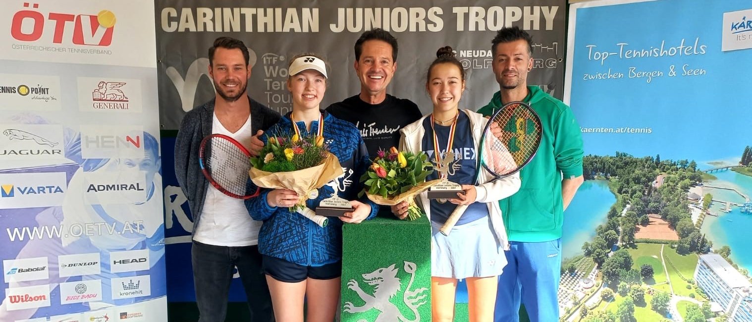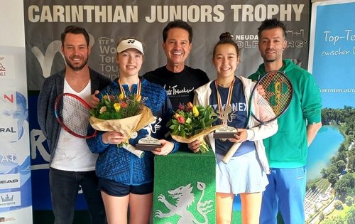 Im Einzel war es für die österreichischen Nachwuchstalente beim ITF-J3-Turnier in Wolfsberg nicht ganz nach Wunsch gelaufen. Dafür hat‘s im Doppelbewerb gar mit einem erfreulichen Titelgewinn geklappt: Mia Liepert hat nicht zum ersten Mal ihre Doppelstärke demonstriert und am Donnerstag bei der Carinthian Juniors Trophy powered by Fresacher & Krenker einen Heimtriumph verbucht. Die Vorarlbergerin blieb mit der Deutschen Marie Vogt in allen vier Partien ohne Satzverlust. Im Finale des internationalen U18-Jugend-Teppichturniers, das heuer zum zweiten Mal nach 2020 ausgetragen wird, schlugen die beiden die Italienerin Francesca Pace und die Spanierin Berta Passola mit 6:3, 7:6 (4).