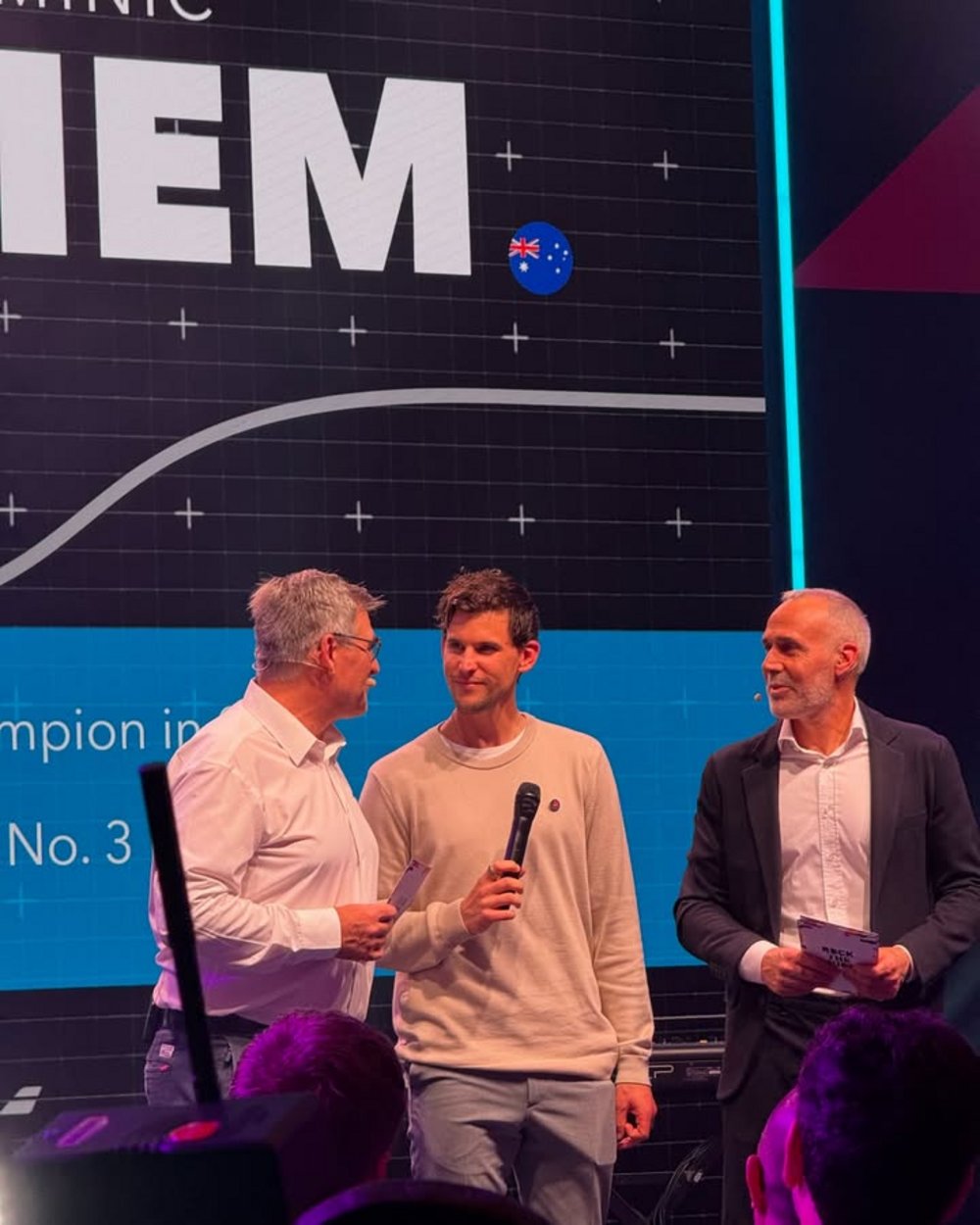 Auch Dominic Thiem stößt in Lyon mit dem CEO von Babolat und weiteren namhaften Ex-Profis an.
