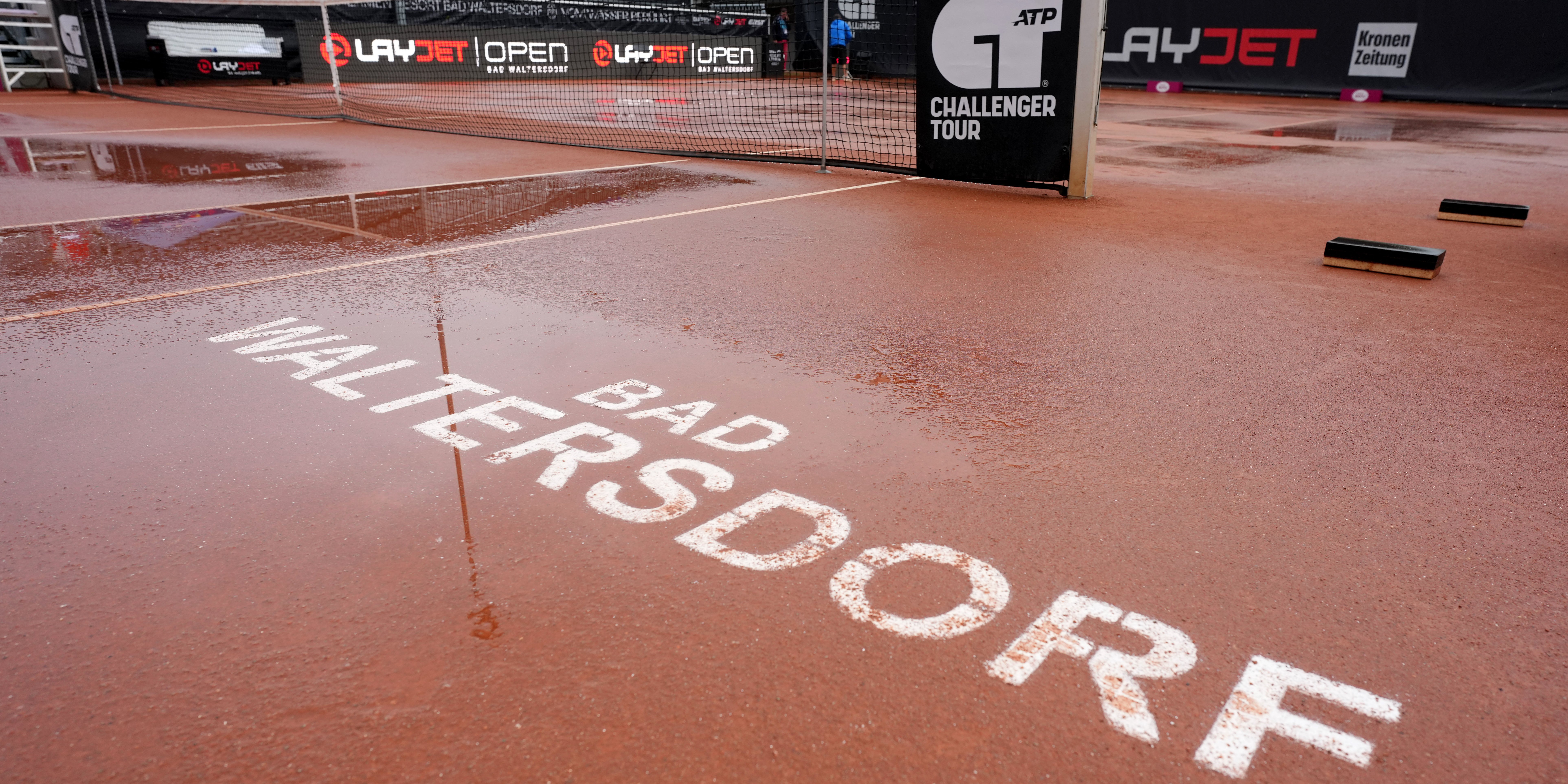 Sisyphus dürfte in der griechischen Unterwelt ganz laut gelacht haben, falls er am Dienstag einen Blick auf die Tennisanlage des Sportaktivparks Bad Waltersdorf erhaschen konnte. Wann immer der Niederschlag nachließ und zumindest auf dem Center Court das Wasser einigermaßen beseitigt werden konnte, begann es wieder stärker zu regnen. Wieder riesige Lacken, spielen nicht möglich – damit wartet bei den LAYJET-OPEN am nächsten Tag ein Mega-Mittwoch.