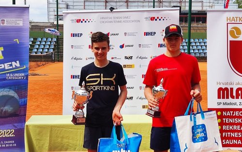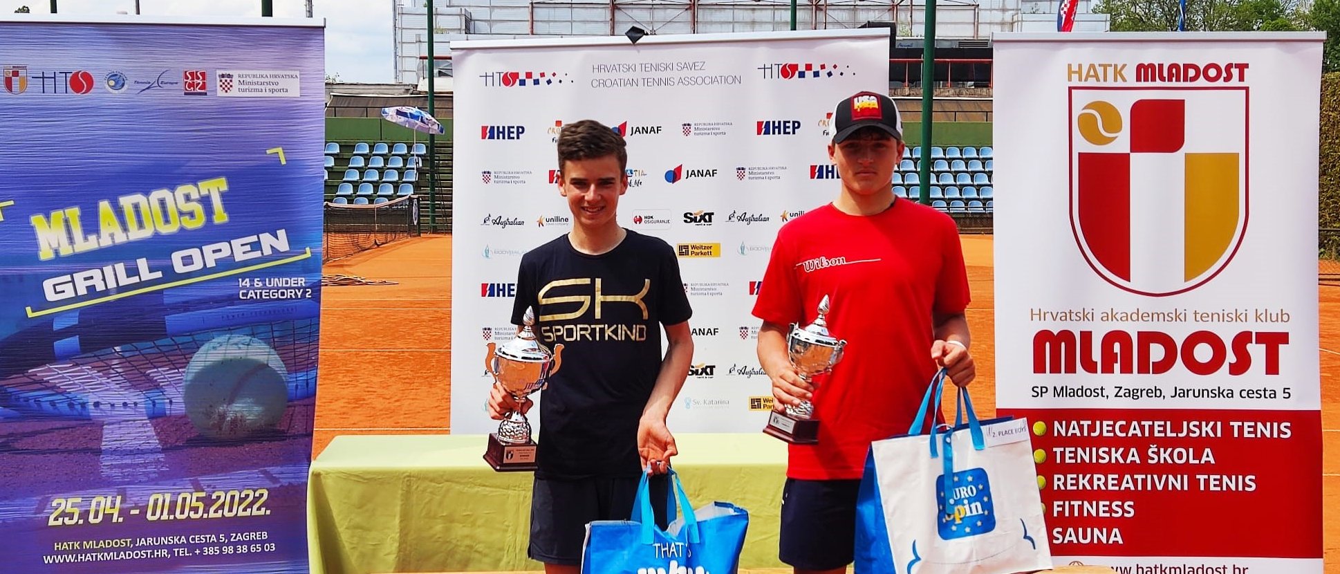 Schauplatz Zagreb: Beim Mladost Grill Open, einem Tennis-Europe-U14-Sandplatzturnier der Kategorie 2, kam’s gleich zu zwei Österreicher-Duellen im fortgeschrittenen Stadium des Events. Der viertgereihte Constantin Neubauer, der im Viertelfinale den Wiener Noah Alishaev (feierte zuvor seinerseits immerhin drei Hauptbewerbssiege) mit einem 6:3, 6:0 gestoppt hatte, und der auf zwei gesetzte Maximilian Heidlmair fixierten mit jeweils fünf klaren Zweisatz-Erfolgen ein Österreicher-Finale und zugleich auch eine Neuauflage des Endspiels der ÖTV-Jugend-Hallenmeisterschaften U14 in Wolfsberg vom März. Neubauer gab auf dem Weg zum Titelspiel in fünf Matches insgesamt 17 Games ab, lediglich zehn davon in den ersten vier Begegnungen. Heidlmair verlor gar nur elf Games, hatte aber im Finale, wie bereits bei den nationalen Titelkämpfen, in drei Sätzen das Nachsehen: Dank eines 6:3, 2:6, 6:0 sicherte sich der Burgenländer Neubauer den Turniersieg – und an der Seite seines oberösterreichischen Gegners zudem noch das Double. Neubauer/Heidlmair dominierten nämlich auch den Doppelbewerb, ließen in drei Partien lediglich zwölf Spiele liegen. Im Finale fertigte das Nummer-eins-Paar die zweitgereihten Franzosen Timothee Andriveau und Charles de Saint Laumer mit 6:4, 6:1 ab.