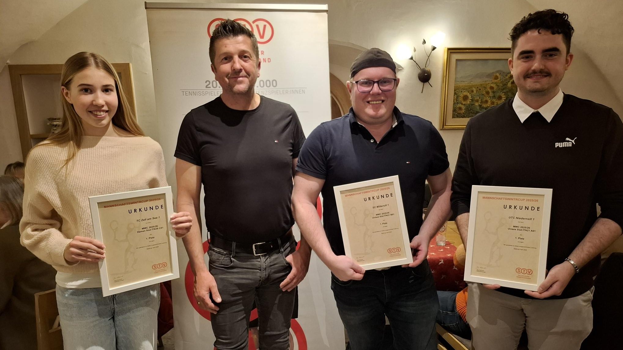 STV; v.l.: Nina Schnaitl (TC Zell am See), Patrick Puchler (UTC Piesendorf), Stefan Pletzer (SC Mittersill), Julian Seitinger (UTC Niedernsill)
